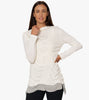 Artful, cool and extremely unique. Masterful knitting give this stand out pullover its alluring luxe appeal. The diagonally placed stitches create depth and dimension while the color blocked hem adds a little sass to your sashay.
